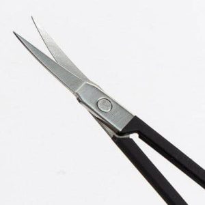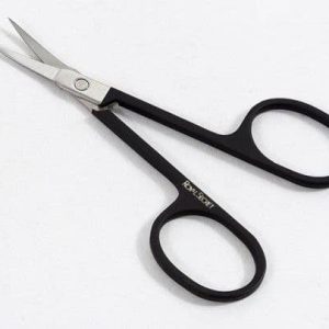 قیچی ابروی فلزی با دسته مشکی، تیز، خوش دست و ضد عفونی آسان. مناسب اصلاح حرفهای ابروها در خانه یا آرایشگاه.