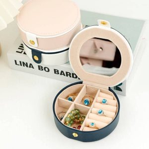 جعبه جواهرات دخترانه شیک و کاربردی، ساختهشده از چرم مصنوعی با کیفیت بالا، طراحی زیبا و فضای داخلی پارتیشنبندی شده، مناسب برای نظمدهی به انواع زیورآلات مانند انگشتر، دستبند، گردنبند و گوشواره.
